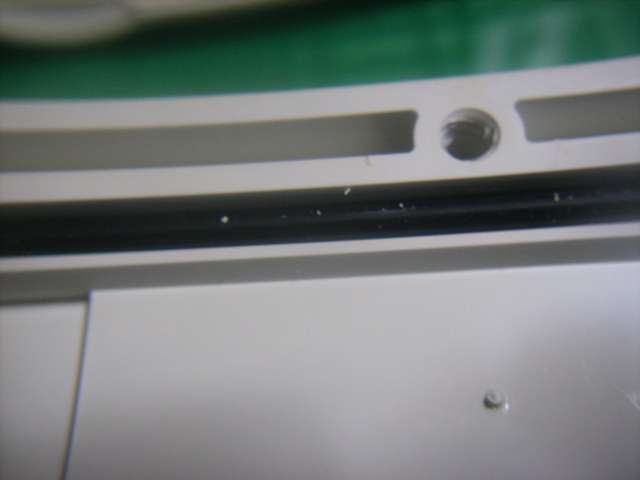浸水跡のような部分のパッキンを見て見ると白い何かのカスが付着していました。