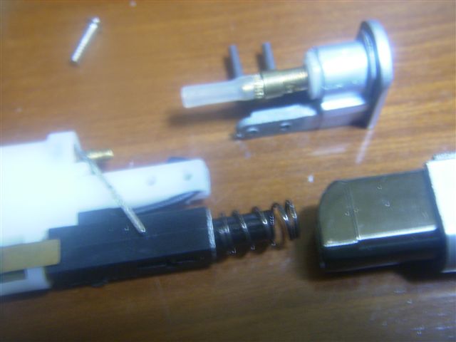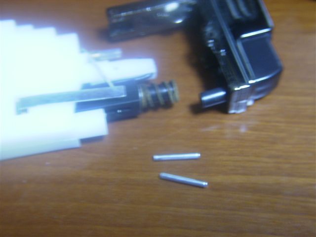 中央のピンを2本抜くとばらせるので写真下に写っているスプリングを抜いて完了です。