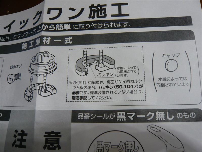 取説を読んでみると陶器製など固い流し台に取り付ける場合は、取り付け金具にクッションのゴムパッキン(50-1047)を別途購入が必要なようです。