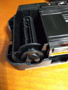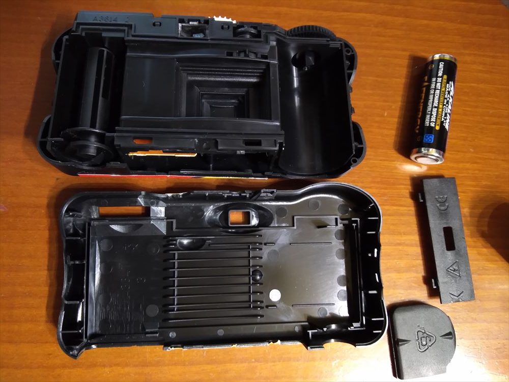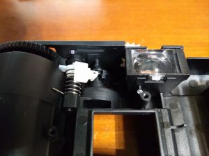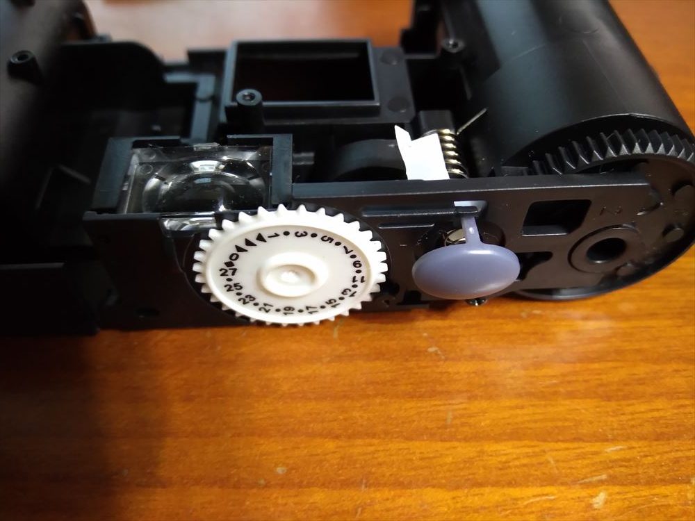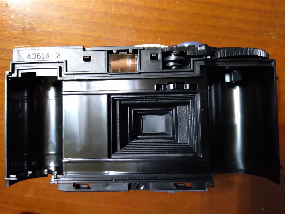 突起部分が組み立て後も露出していたことから、組み立て後にフィルムを巻き上げていたのでしょう。