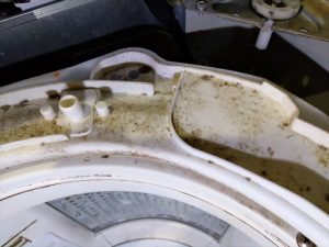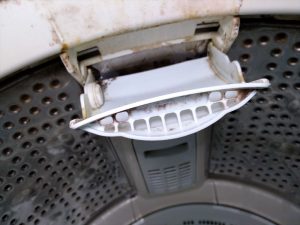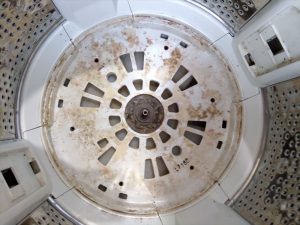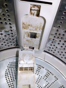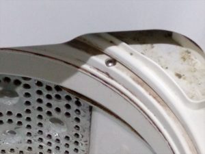 柔軟剤か何かが汚れとしてこびりついたもののようです。