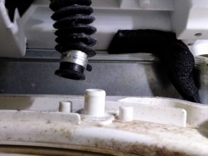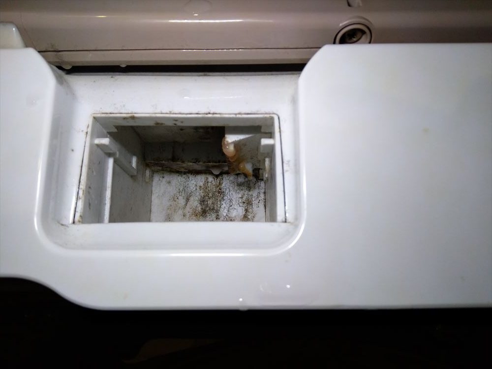 柔軟剤用の注水ホース?が右奥に繋がっているところがあって綺麗には開きません。