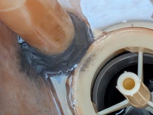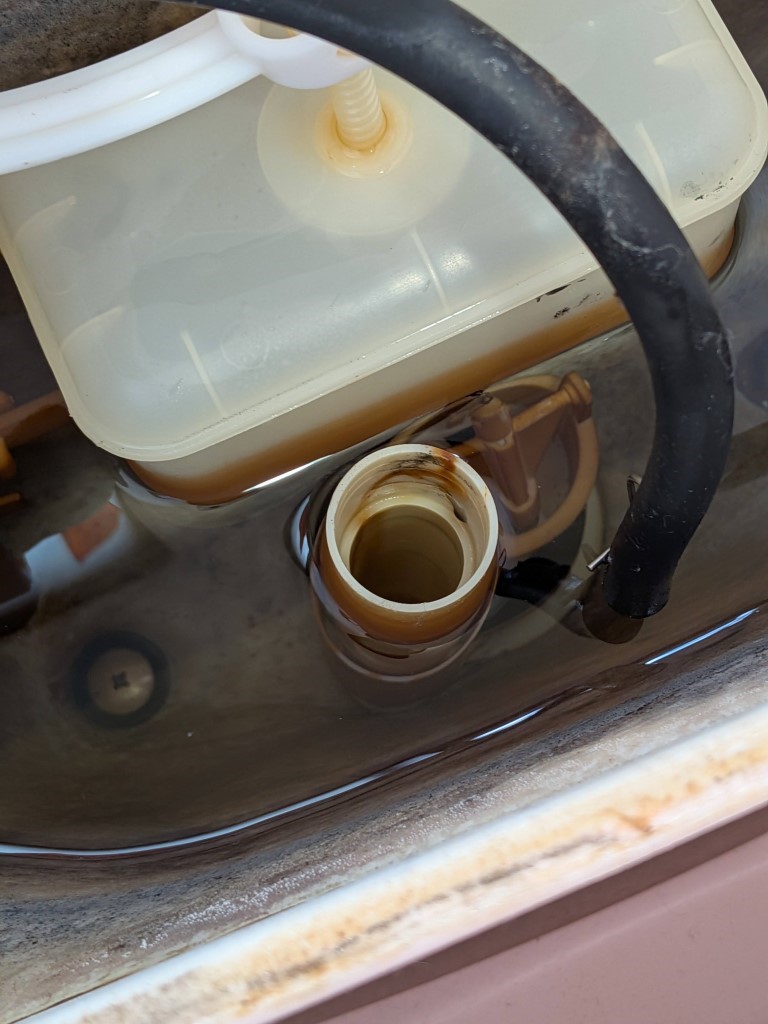 原因はパイプがタンク内底の樹脂部品に差し込まれて接着されているのですが、