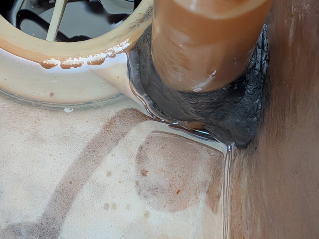 この接着箇所が剥がれたり、亀裂が入ったりして水漏れを起こしているんですね。