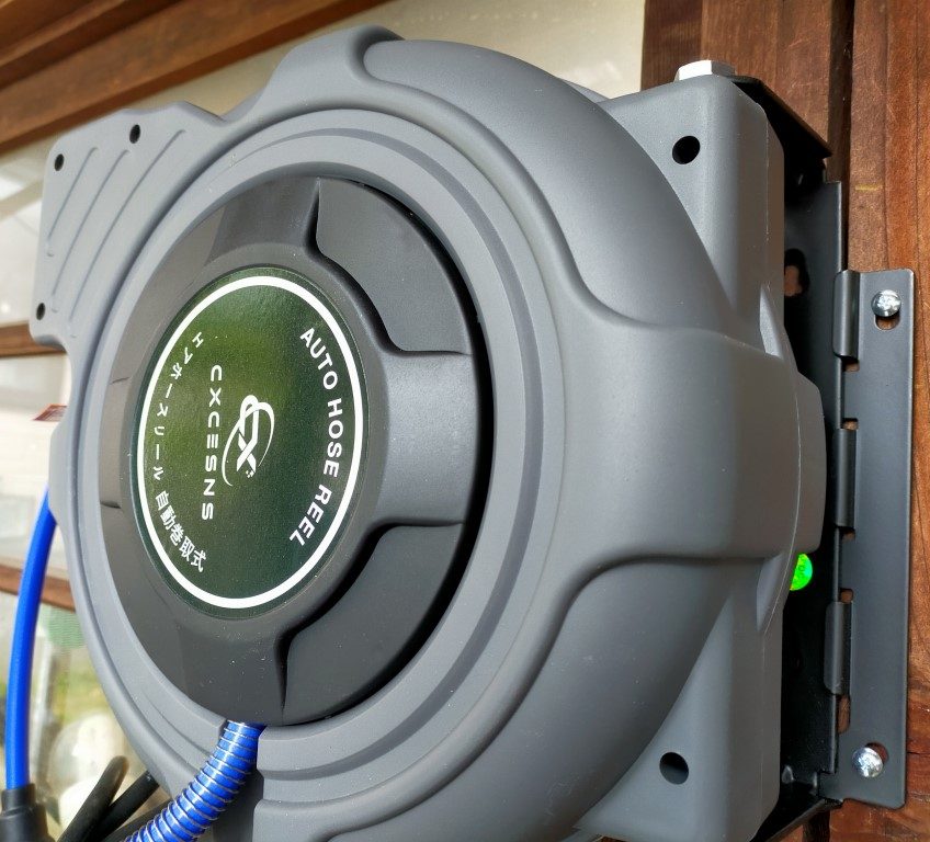 5月に購入して、屋外に取り付けた自動巻取式エアーホースなんだけど、