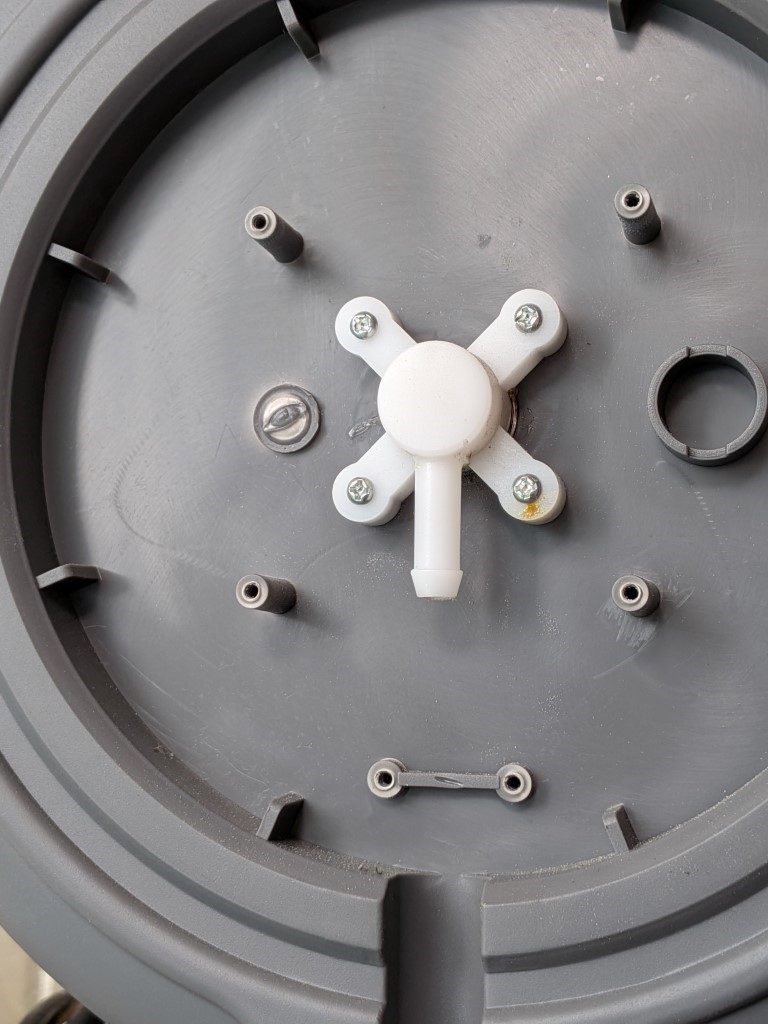 ホースバンドのネジがおかしな方向ですが、上向きにするとカバーがつけられないので、
