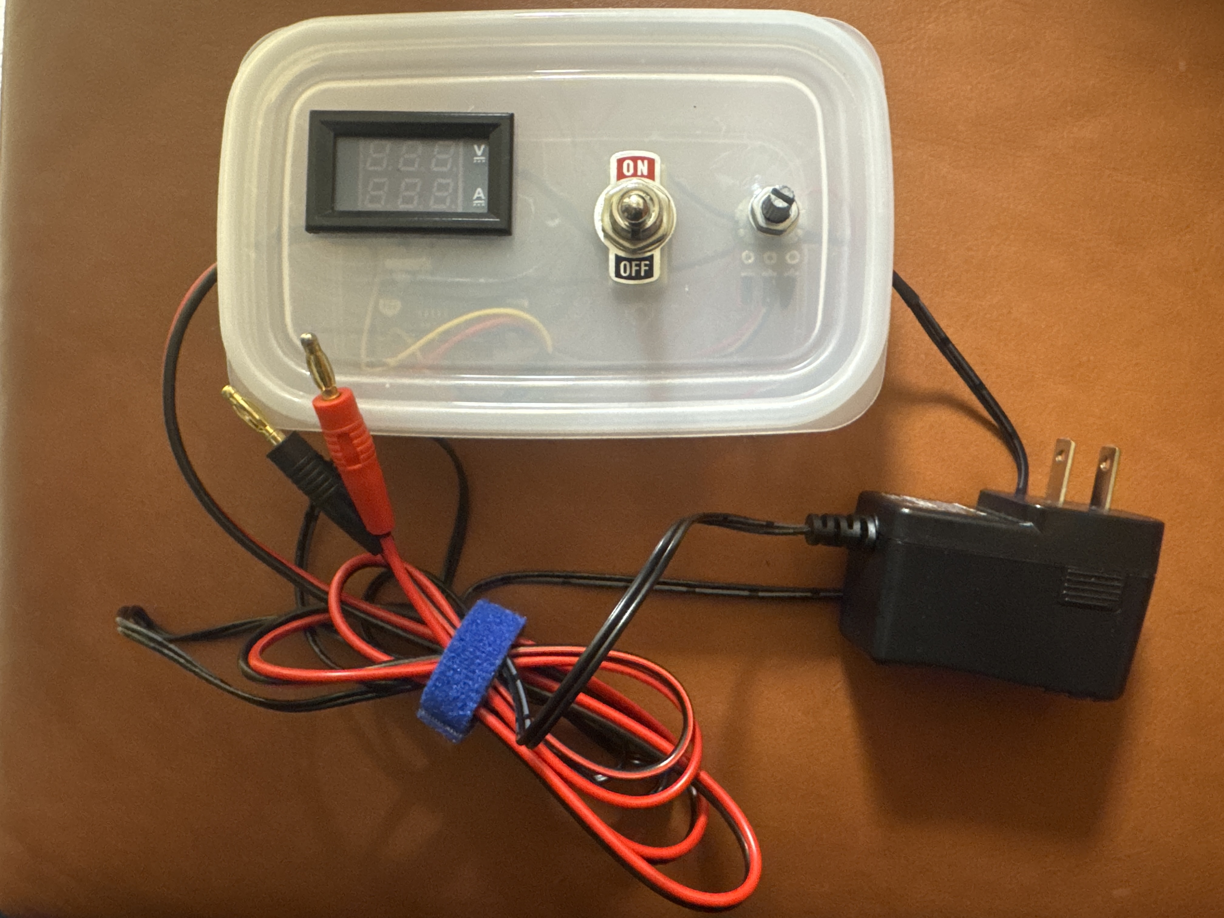 ※コンバーターの青い箱に付いているネジっぽいものをクルクル回すと電圧が調整できます。