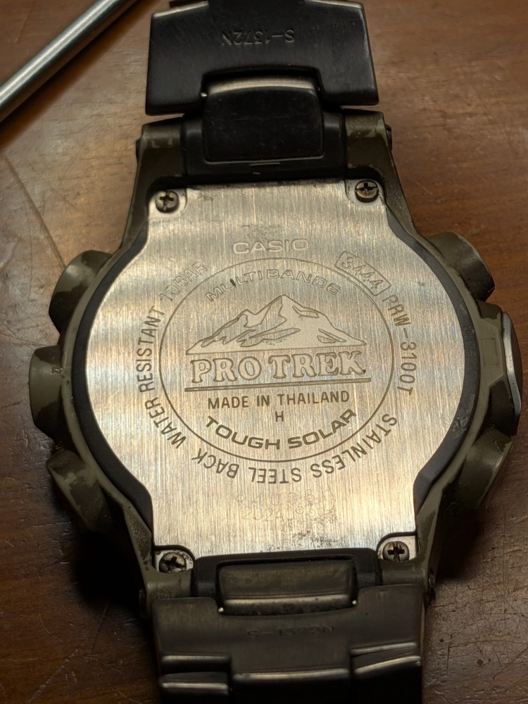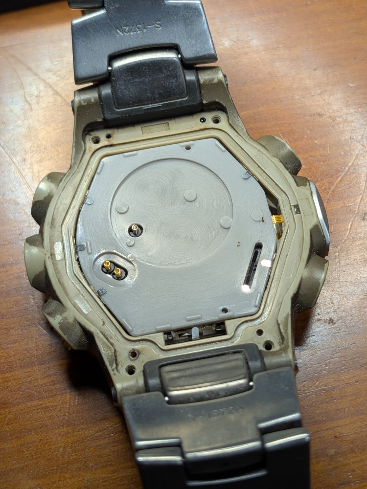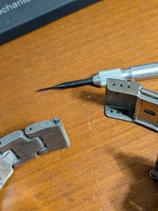 裏ブタを開けて作業しますが、メタルバンドはループ状で作業の邪魔なので一旦分離します。