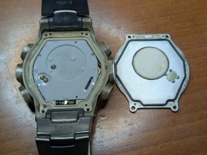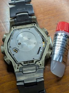 防水パッキンは純正以外使えないので丁寧に汚れをふき取って再利用します。